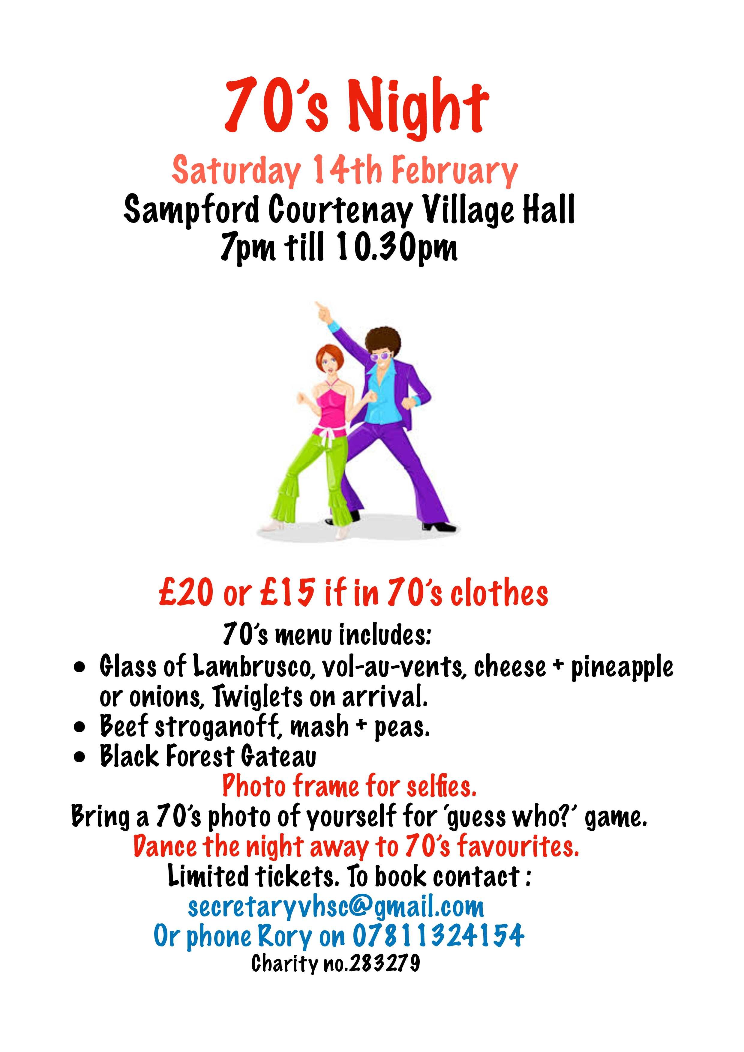 Saturday 14th - 70’s Valentines Disco & Meal - see poster!