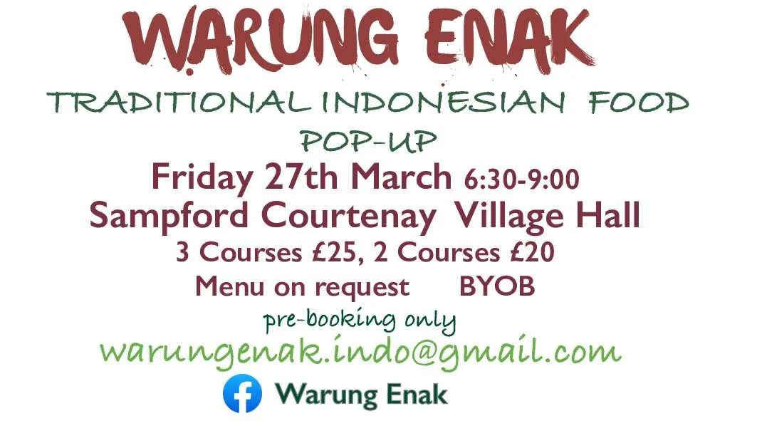 Friday 27th @ 6.30 Pop Up Indonesian Food - Eat in or Take away BOOKING ESSENTIAL - See poster below.