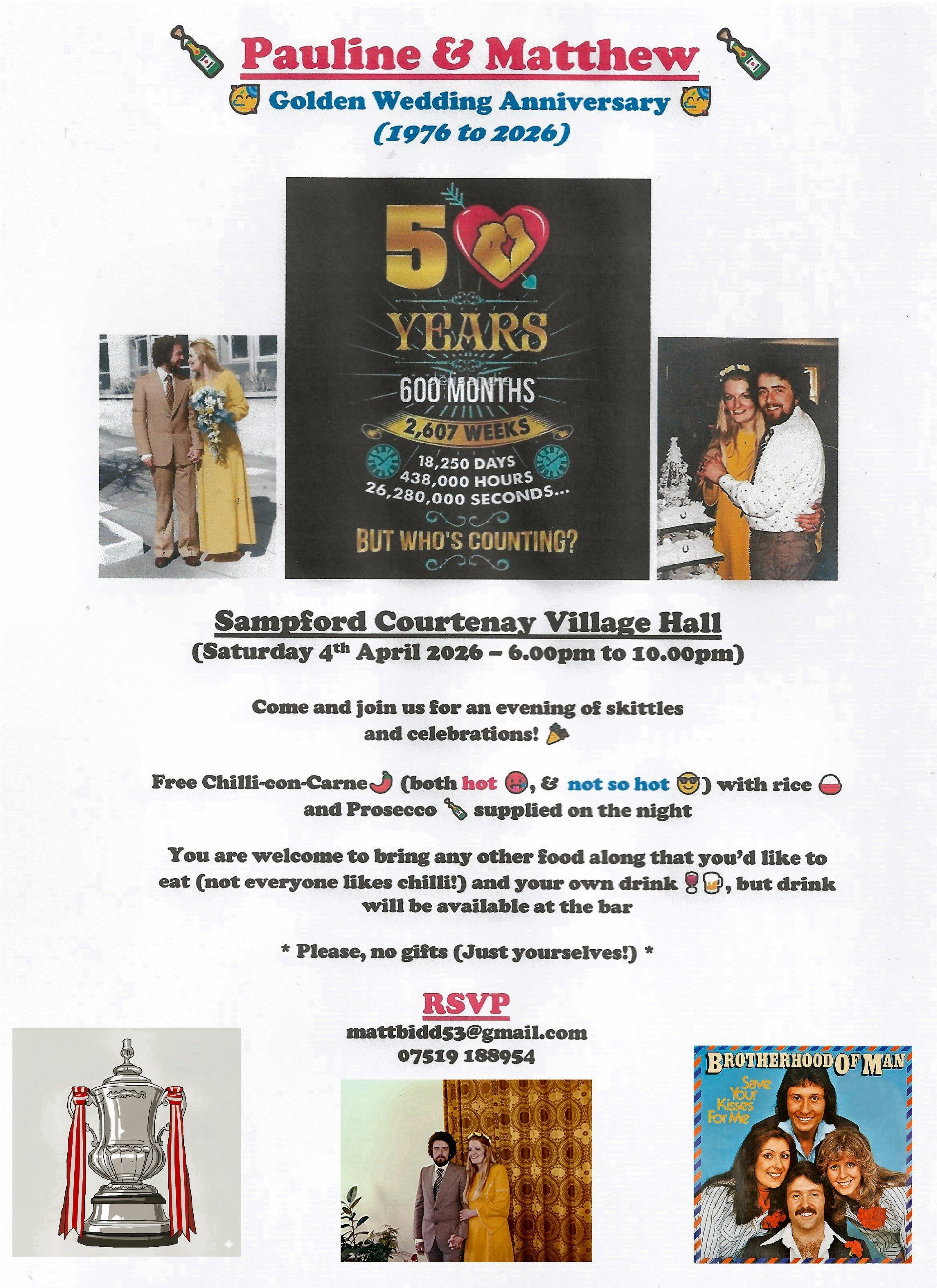 Saturday 4th - Matt and Pauline’s Wedding Anniversary Bash