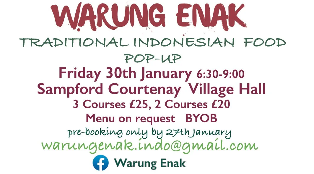 Friday 30th - Pop Up Indonesian Food Evening 6.30 until 9pm